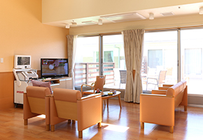 伊吹山の麓に位置した当施設は、温もりのある木をふんだんに使った木造平屋建てで、広くて開放的な吹き抜けリビングや憩いのスペース、中庭を設け、利用者がどこにいても心地よさを感じられる、そんな施設です。また、全館バリアフリーはもちろん、床には利用者が万が一転倒した際にも衝撃を和らげる二重床を採用するなど、安全面にも配慮しています。